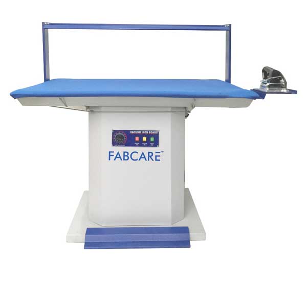 LARGE FLAT TOP padded with Imported Silicon padding, Strong welded construction, Thermostatically controlled stainless steel table heater, Extended exhaust duct with lighting device, Adjustable garment hanger stand, Garment storage rack. POWERFUL SUCTION through centrifugal blower activated by spring loaded full length foot pedal working in conjunction with sturdy micro switch, Ideal cover material helps achieve excellent ironing results.
